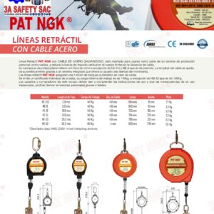 BLOQUE RETRACTYL (L/VIDA) HE-20 (PAT NGK) (20 MTs) CABLE DE ACERO GALVANIZADO ANSI Z359. 14-2021 EN 360:2002