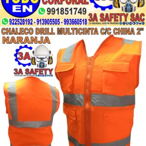 CHALECO DRILL TEC T/REPORT. C/NARANJA, C/CINTA 1″ T. L