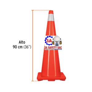 CONO DE SEGURIDAD VIAL 36″ (90 CM) NARANJA CON DOBLE CINTA REFLECTIVA (INFERIOR SUPERIOR)