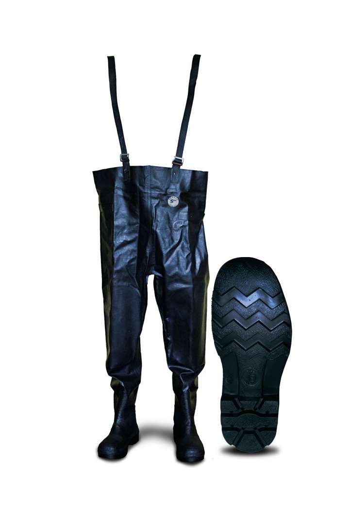 Bota Pantalón de caucho con la puntera, el tobillo, el talón y el ingle están reforzados íntegramente y con suspensiones ajustables para hombros y cintura.  Ideal para trabajos en faenas múltiples de sumersión o niveles altos de caudal.