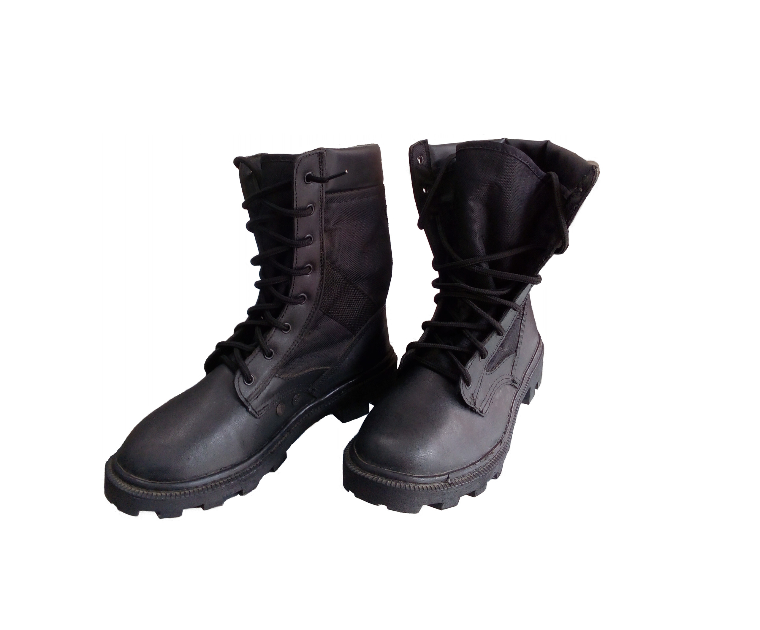 BOTIN BORCEGUIES LONA Y CUERO NEGRO PLANTA CAUCHO (COCIDO) PUNTERA REFORZADA TALLA 40