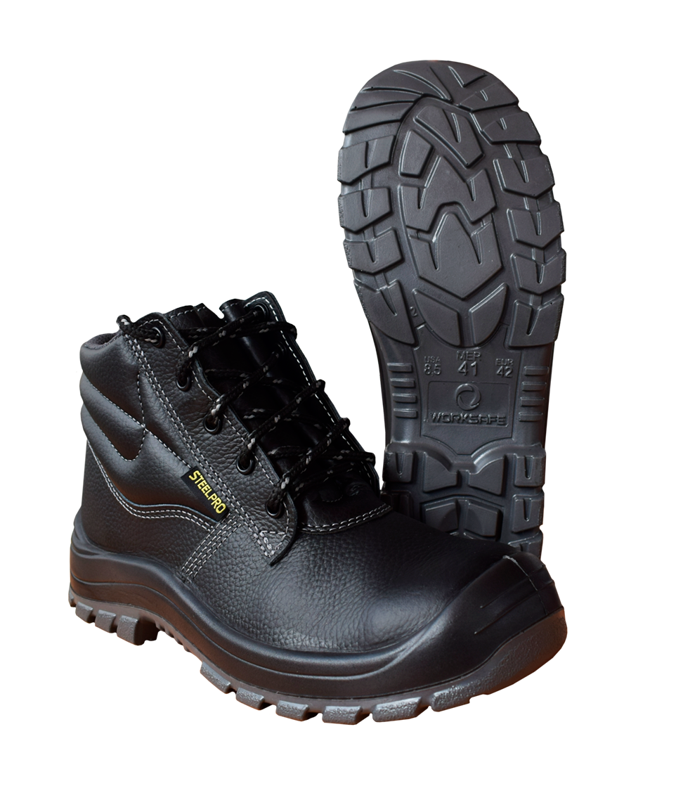 STEELPRO en su línea de calzado de seguridad, ofrece el diseño WORKER fabricado en cuero engrasado estampado, con cuello acolchado para mayor confort, suela especializada resistente a hidrocarburos y sus derivados, aplica para diferentes tipos de industrias y sectores económicos.