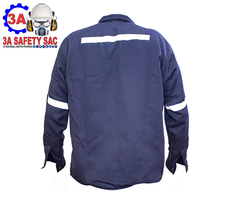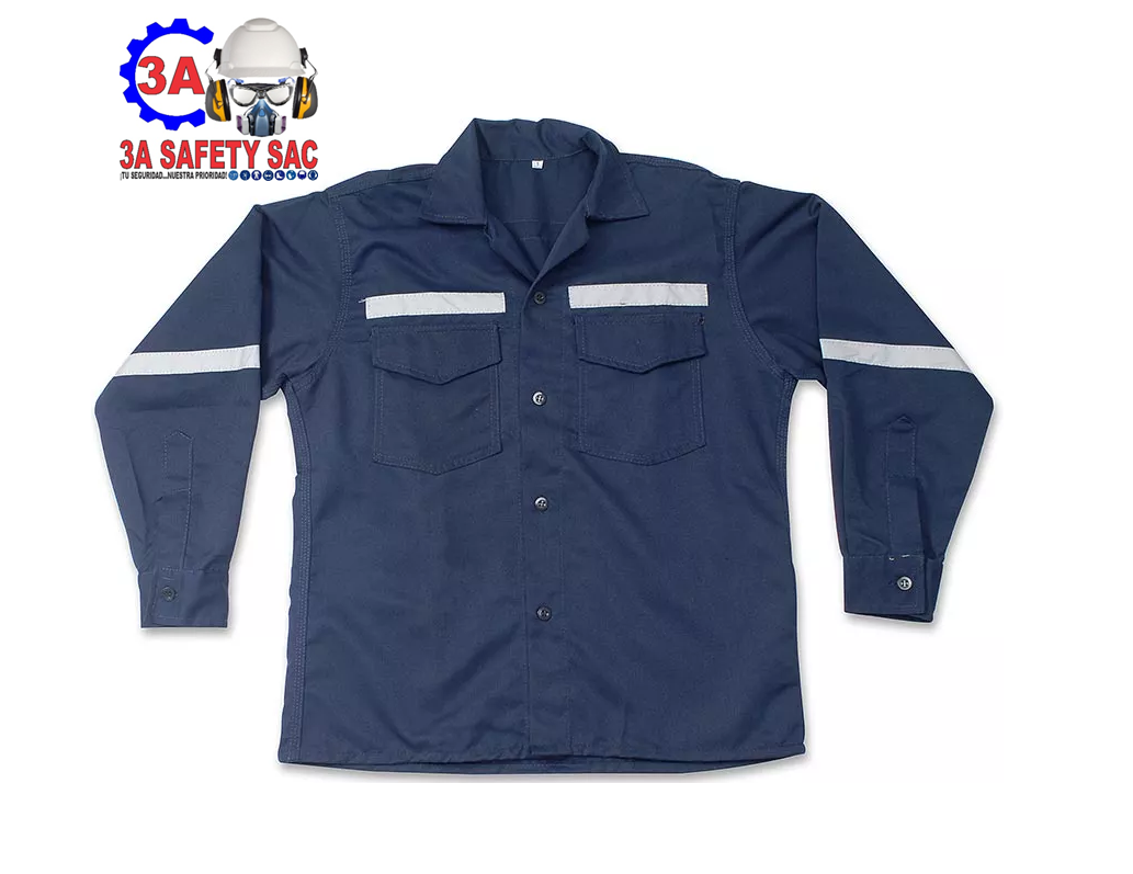 Camisa drill de trabajo azul con cinta reflectiva de 1″, fabricado en drill tecnología ideal para personas que prestan servicios en obras.