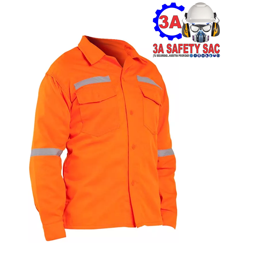 Camisa drill de trabajo Naranja con cinta reflectiva de 1″, fabricado en drill tecnología ideal para personas que prestan servicios en obras.