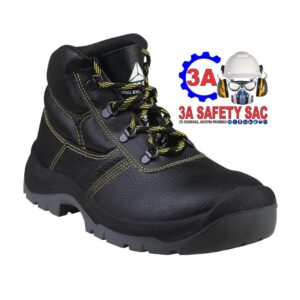Bota Campera de cuero vacuno, con alma interna de tela mesh en el empeine y badana en el talón, espuma en los tobillos, suela de caucho con nitrilo, plantilla removible de EVA para mayor comodidad, puntera de acero, y tirantes en la parte superior de la caña.