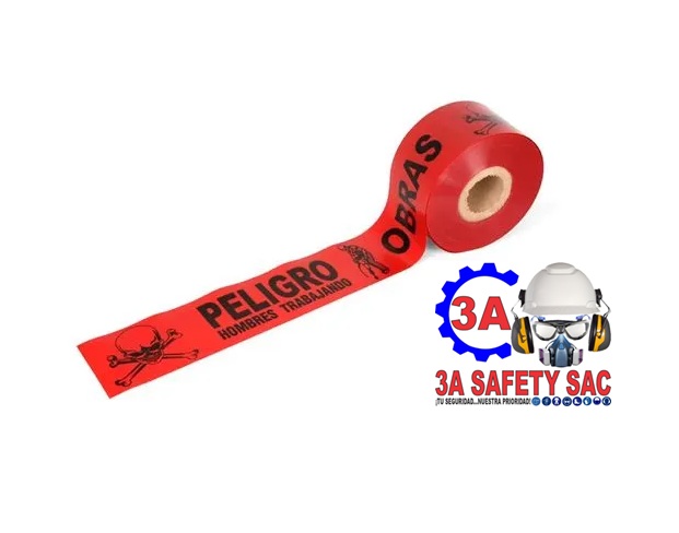 CINTA SEÑALIZACION PELIGRO OBRAS HOMBRES TRABAJANDO ROJO POR 200 METROS