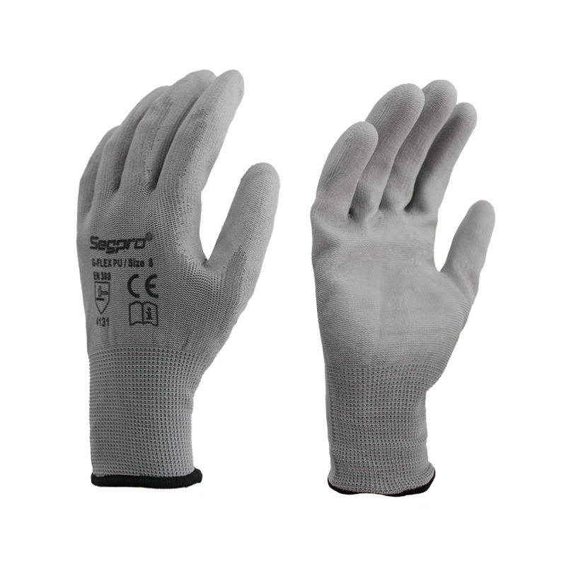 GUANTE NYLON COLOR GRIS CON PALMA DE PU GRIS Y RIBETE EN PUÑO MODELO G-FLEX PU. SEGPRO TALLA L (9)(GPUGFLEXGR-9)