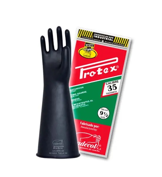 GUANTES DE JEBE PROTEX CALIBRE 35 (CODO) 15″ TALLA 9 ½ PROTEX