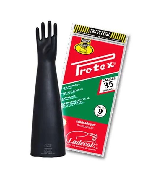 GUANTES DE JEBE PROTEX CALIBRE 35 (BRAZO) 24″ TALLA 9        PROTEX