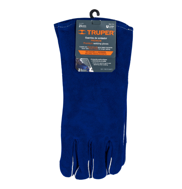 GUANTES AZULES REFORZADOS PARA SOLDADOR, TRUPER 15246/GU-SOL (14.5″)