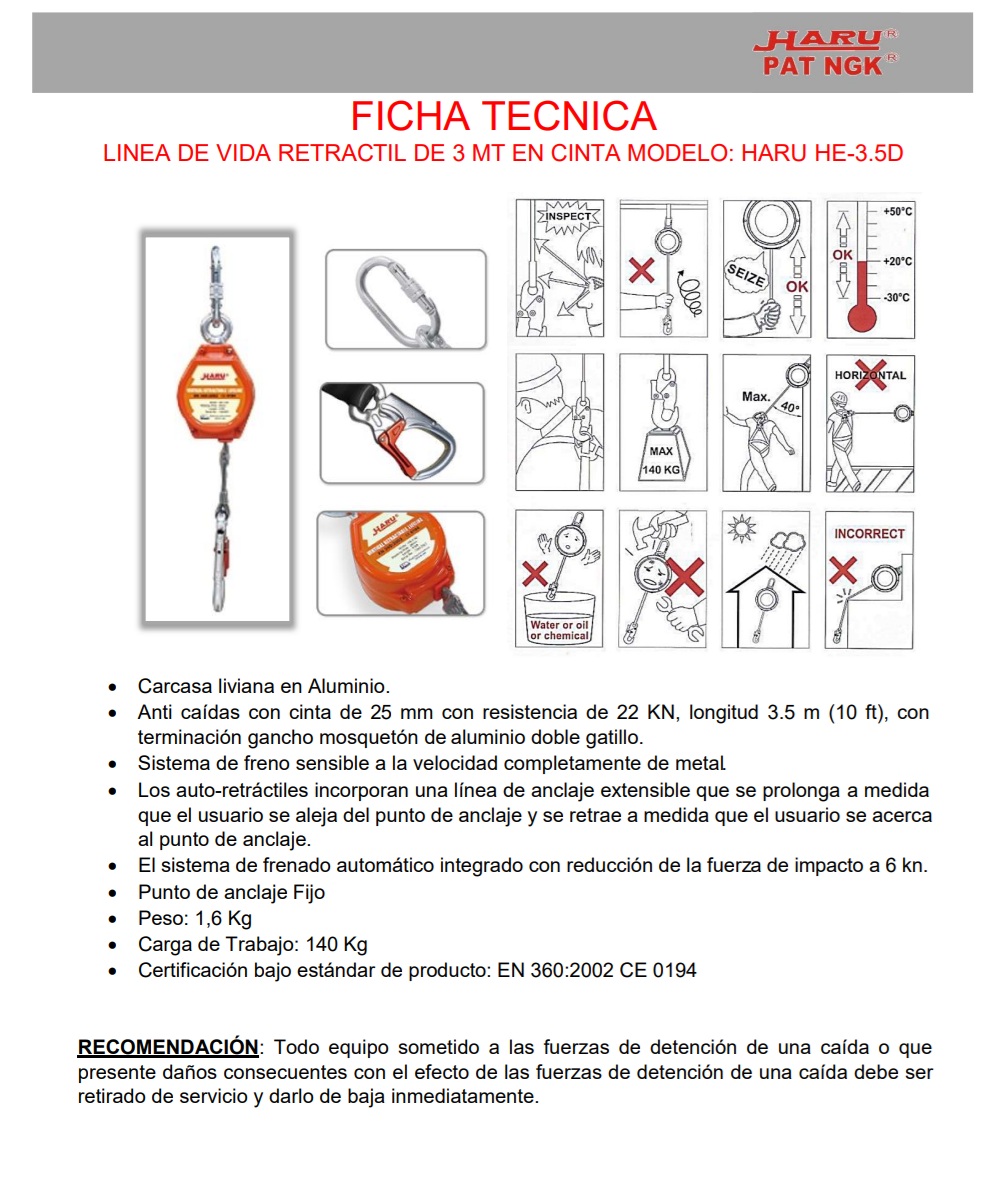 Las líneas retráctil HARÚ aseguran una función de bloqueo automático en caso de caída.
