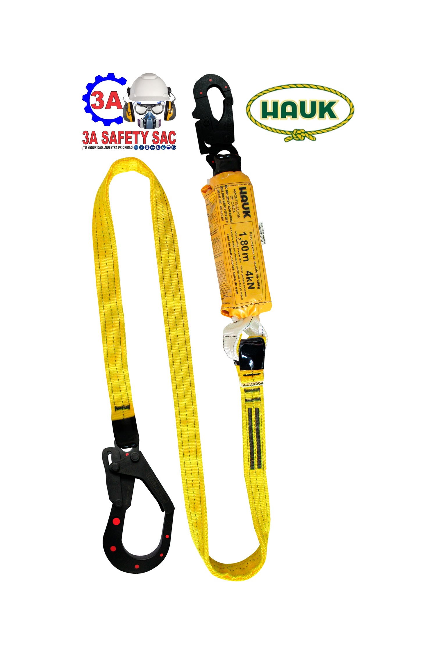 LÍNEA DE VIDA DIELÉCTRICA, CON AMORTIGUADOR DE CAÍDA FACTOR 1, DE 1.80 M, UN GANCHO 3/4″ Y UN GANCHO DE 2 1/4″ (DN1GDDD) HAUK