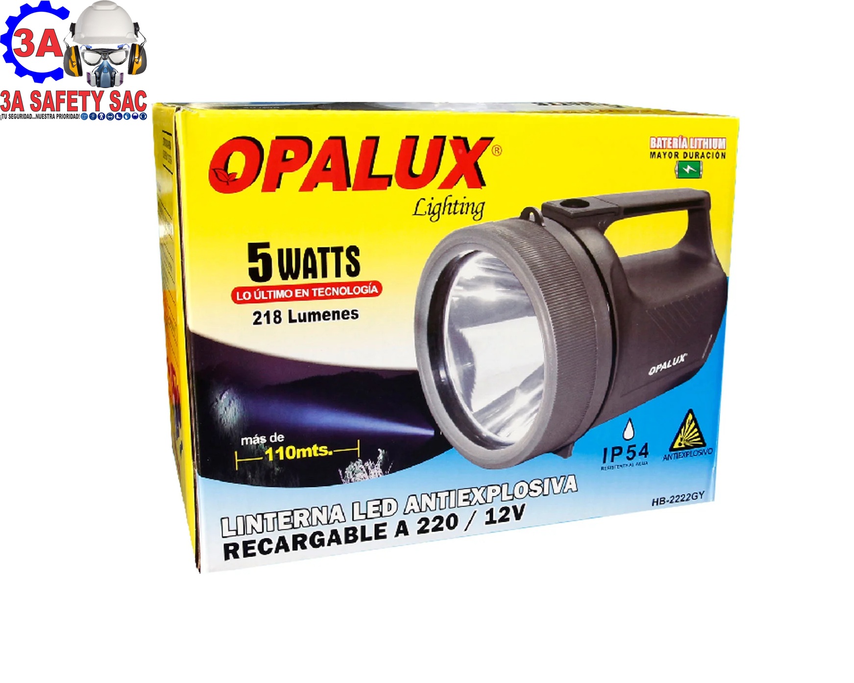 LINTERNA LED ANTIEXPLOSIVA RECARGABLE A 220/12V-5WATTS/110 MTS. HB-2222GY/OPALUX IP54