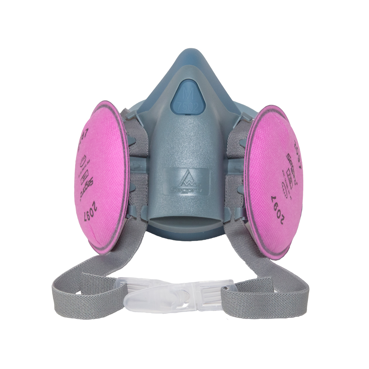 Aplicaciones: El respirador de media cara más el filtro 2097, se utiliza para trabajos expuestos a partículas de sustancias peligrosas, reducción de plomo, cadmio, arsénico, industria farmacéutica, soldadura eléctrica, procesos químicos y revestimientos (base asfáltica).