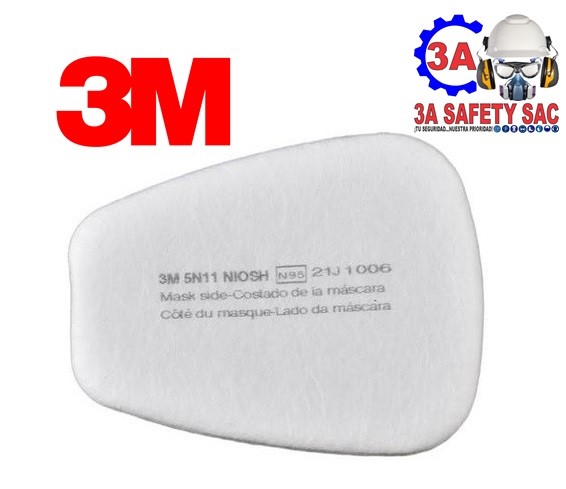 El pre filtro 5N11 de 3M protege contra polvos y partículas líquidas sin aceite. Está aprobado para protección respiratoria contra polvos como carbón, algodón, aluminio, trigo, hierro y sílice. Además, es efectivo contra neblinas a base de líquidos no aceitosos.