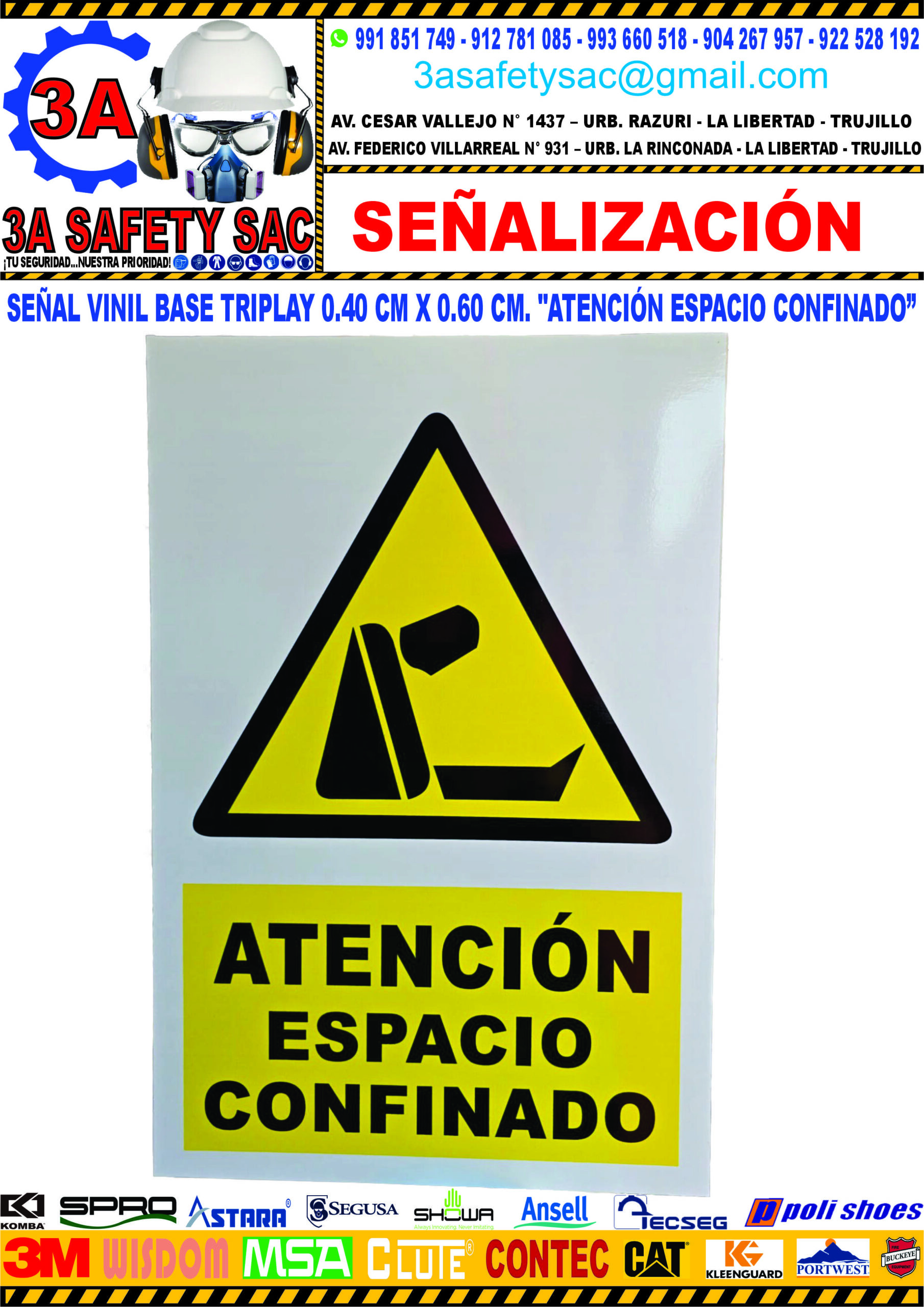 SEÑAL VINIL BASE TRIPLAY 0.40 CM X 0.60 CM. “ATENCIÓN ESPACIO CONFINADO”