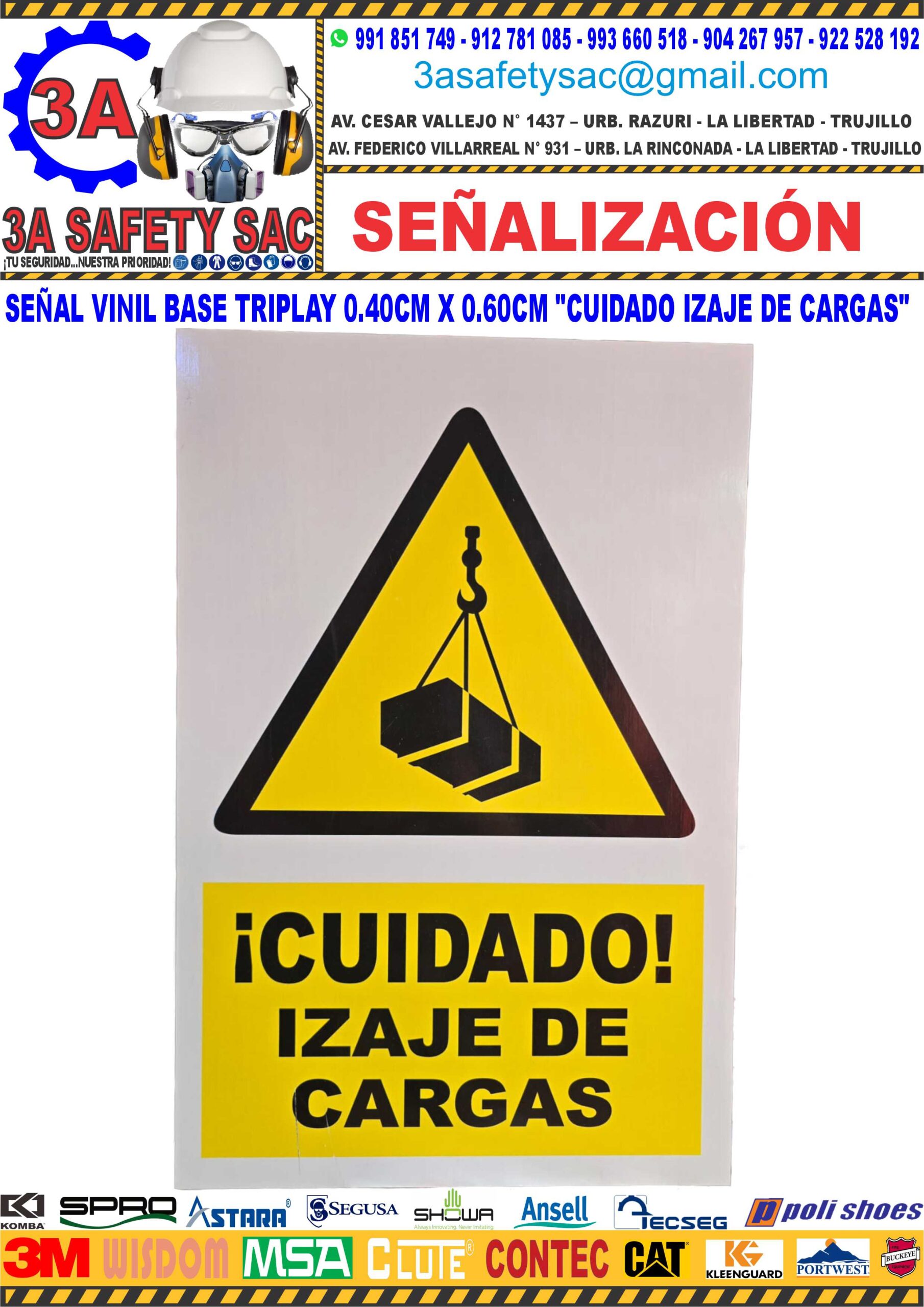 SEÑAL VINIL BASE TRIPLAY 0.40CM X 0.60CM “CUIDADO IZAJE DE CARGAS”