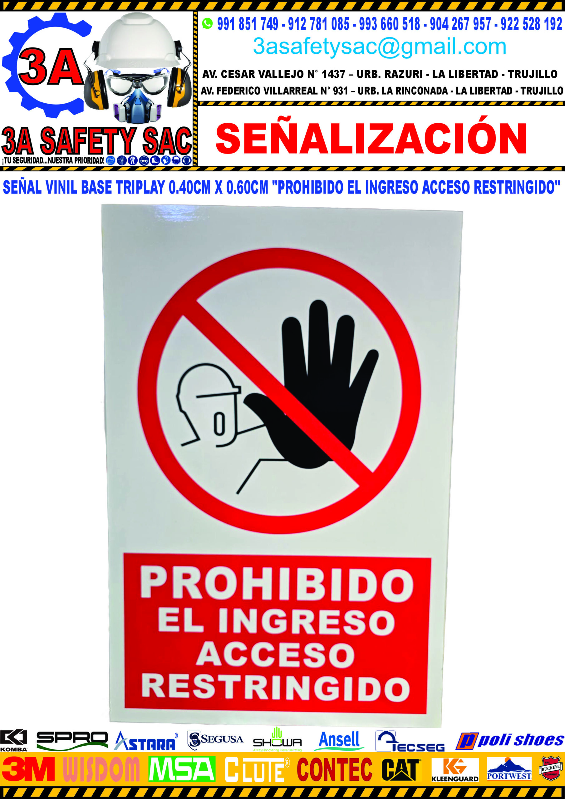 SEÑAL VINIL BASE TRIPLAY 0.40CM X 0.60CM “PROHIBIDO EL INGRESO ACCESO RESTRINGIDO”