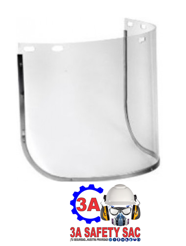 Visor de diseño ergonómico, para protección total del rostro con el fin de evitar diferentes peligros a los que se encuentra expuesto, tales como: Ácidos, quemaduras, abrasión y chispas. Esta protección facial garantiza a nuestros consumidores su seguridad en distintos tipos de trabajo y debe ser usado como complemento en el casquete o adaptador porta visor.